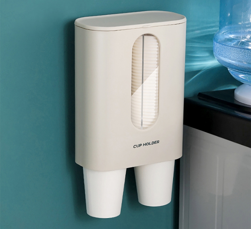 종이컵을 편리하고, 청결하게 벽면 손상 없이 사용하는 부착식 디스펜서
