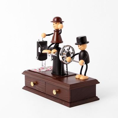 옛날 재봉틀 미니어처, 오르골 보석함 태엽을 오른쪽으로 감고,